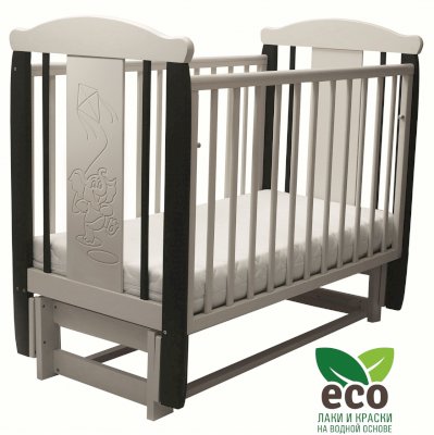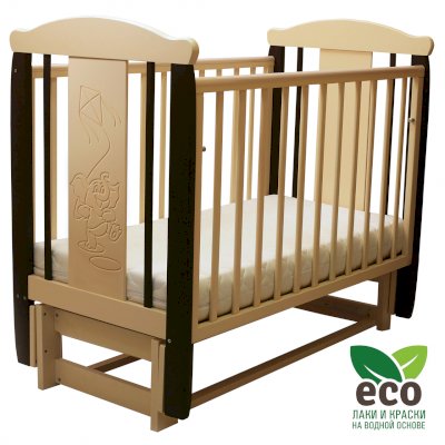 Кроватка "Соня 05" имеет механизм качания продольный маятник. Механизм качания фиксируется. Возможен вариант кровати с ящиком.