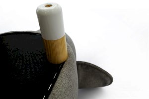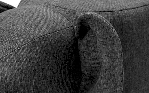 Пуф обшит прочной и экологичной рогожкой серого цвета. Материал натуральный, приятный на ощупь, устойчив к загрязнениям.