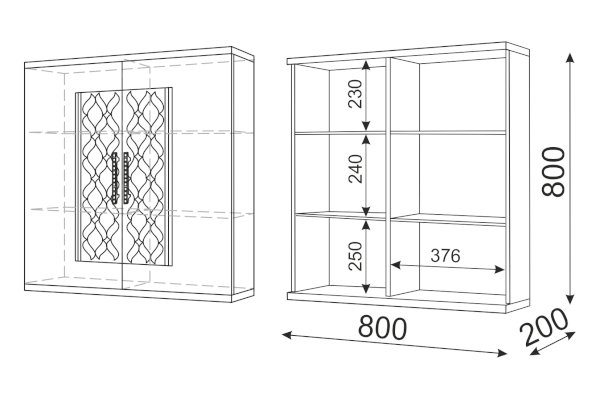 • За каждым распашным фасадом по 2 съемные полки ЛДСП.