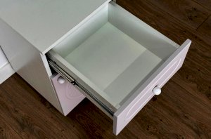 Тумба Милана с ящиком гармонично сочетается с другими модулями серии и легко вписывается в различные зоны детской комнаты.
