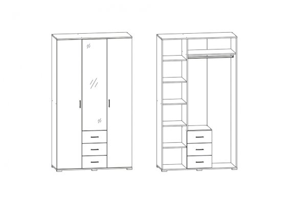 Шкаф 3-х створчатый с зеркалом мод.№2 Сити (Террикон)