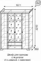 Шкаф 4-х дверный с ящиками и зеркалом №2 Венеция (Ижмебель)